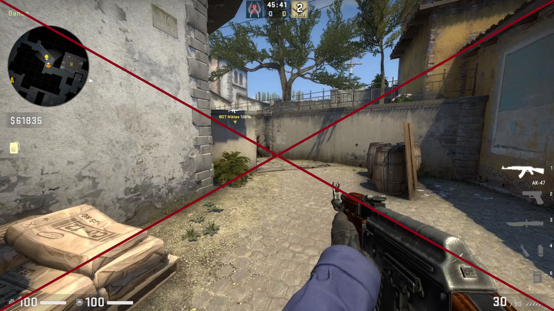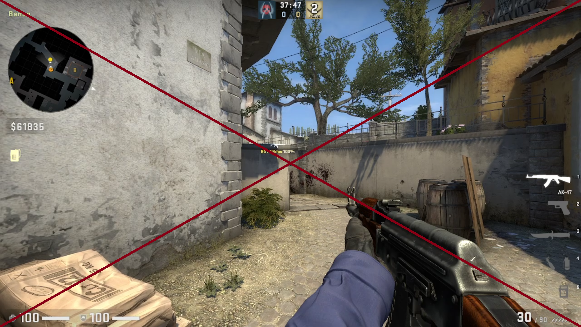 Another aspect of how you should place your crosshair is how you anticipate that the enemy will peek, and how you plan to react to each scenario. Lets say you anticipate that the enemy will shortpeek you, you place your crosshair tight, but then he wideswings instead – what is your plan for this scenario? Holding a too tight angle, you will be at a disadvantage if the enemy swings wide, and you don’t have any plan other than flicking to them. However holding a tight angle if you are holding through a crack may cover this weakness, as they will go past your angle if they wideswing you.